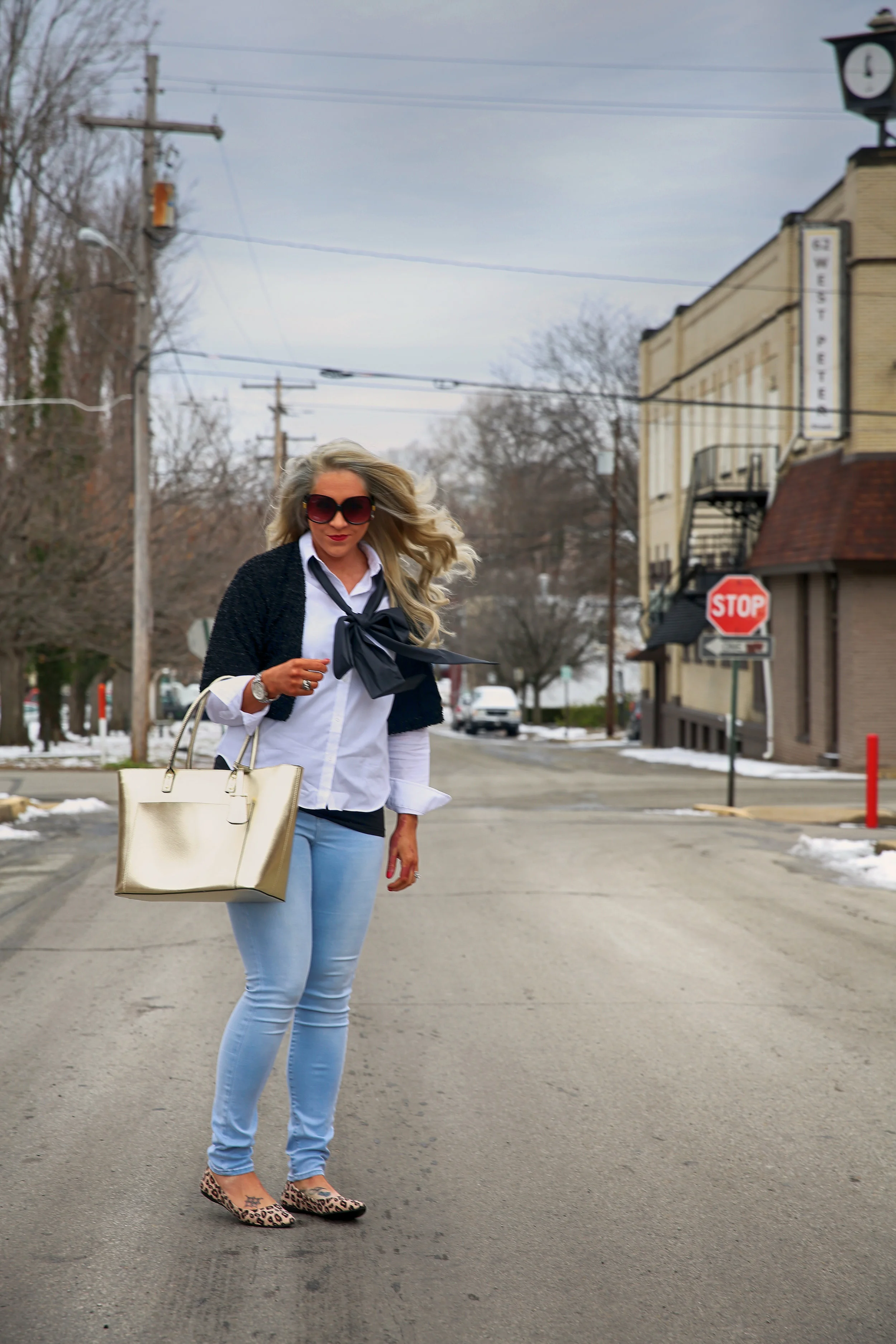 Diving right into some fab trends. Fashion is all about looking ahead. While it may be Winter now, so many of us fashion girls have our heads in Spring. I'm certainly not saying ignore the now. Enjoy the hot chocolate, skiing, boots and furs! I know I am. I've done a little leg work for you. The pussy-bow blouse has made a major comeback (we saw it some for fall fashion) and is the perfect way to start wearing a little spring now. Here, I'm showing you how to make the look work for you if you want to rock the look but aren't really wanting to commit to the full on blouse.