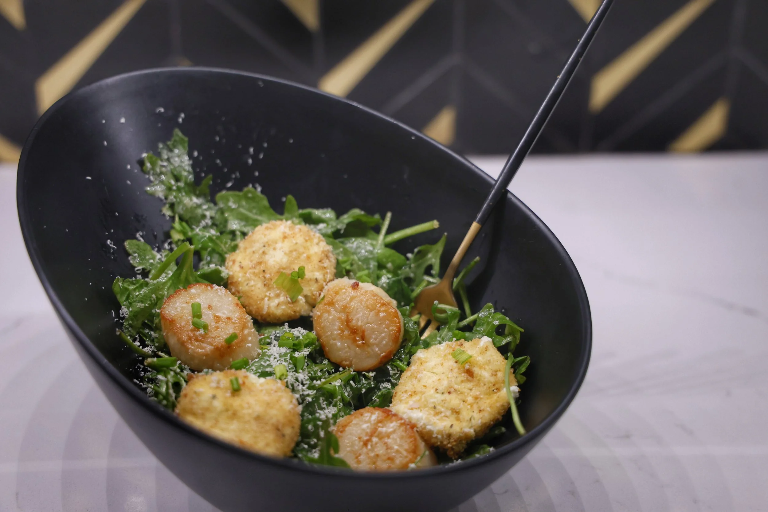 One thing I added to this recipe that The Test Kitchen didn’t call for was seared scallops, but I thought it would be an amazing addition and it did not disappoint. If you choose, pat down and season the scallops and sear them for a few minutes on each side. I did mine in butter.