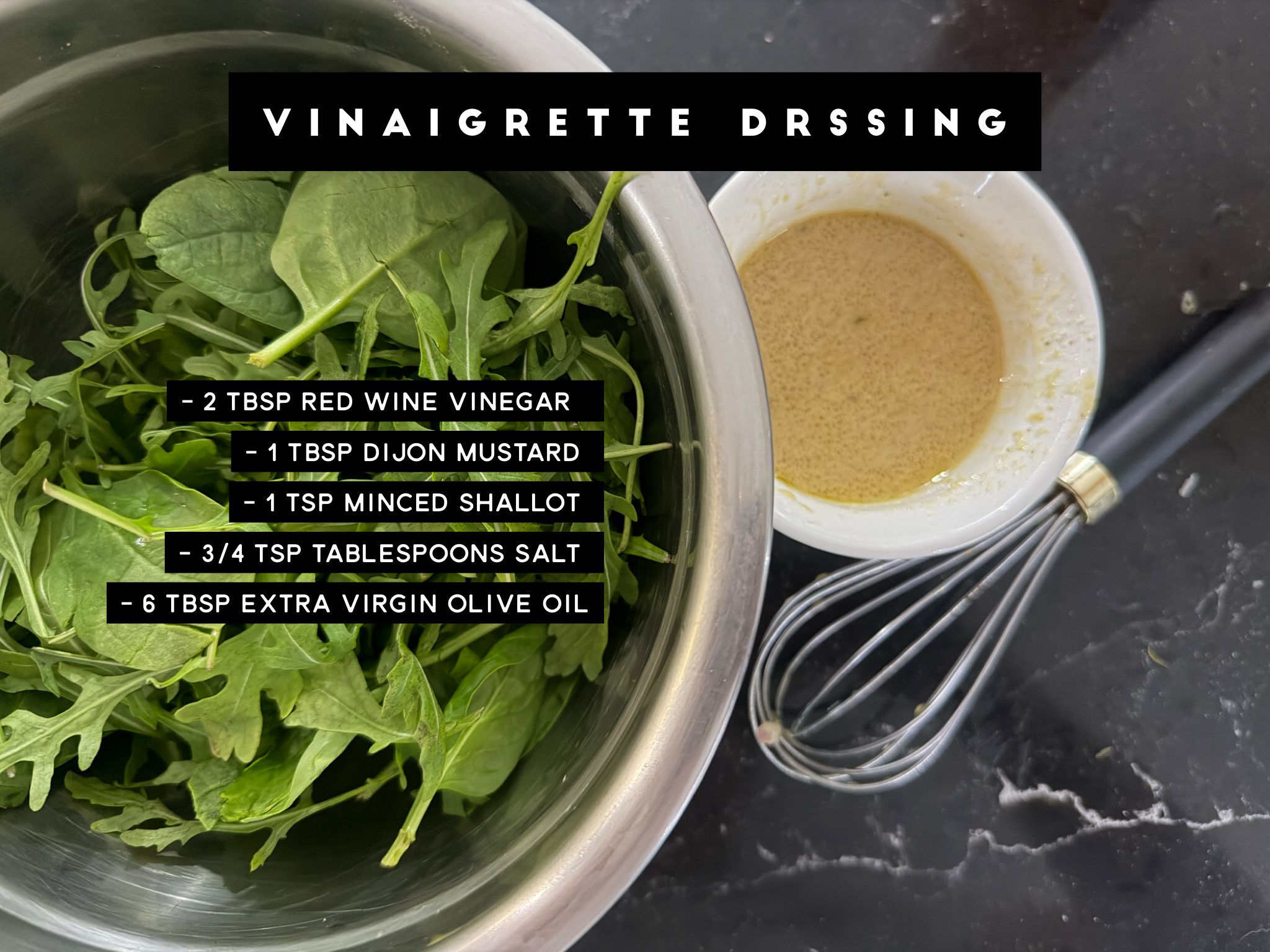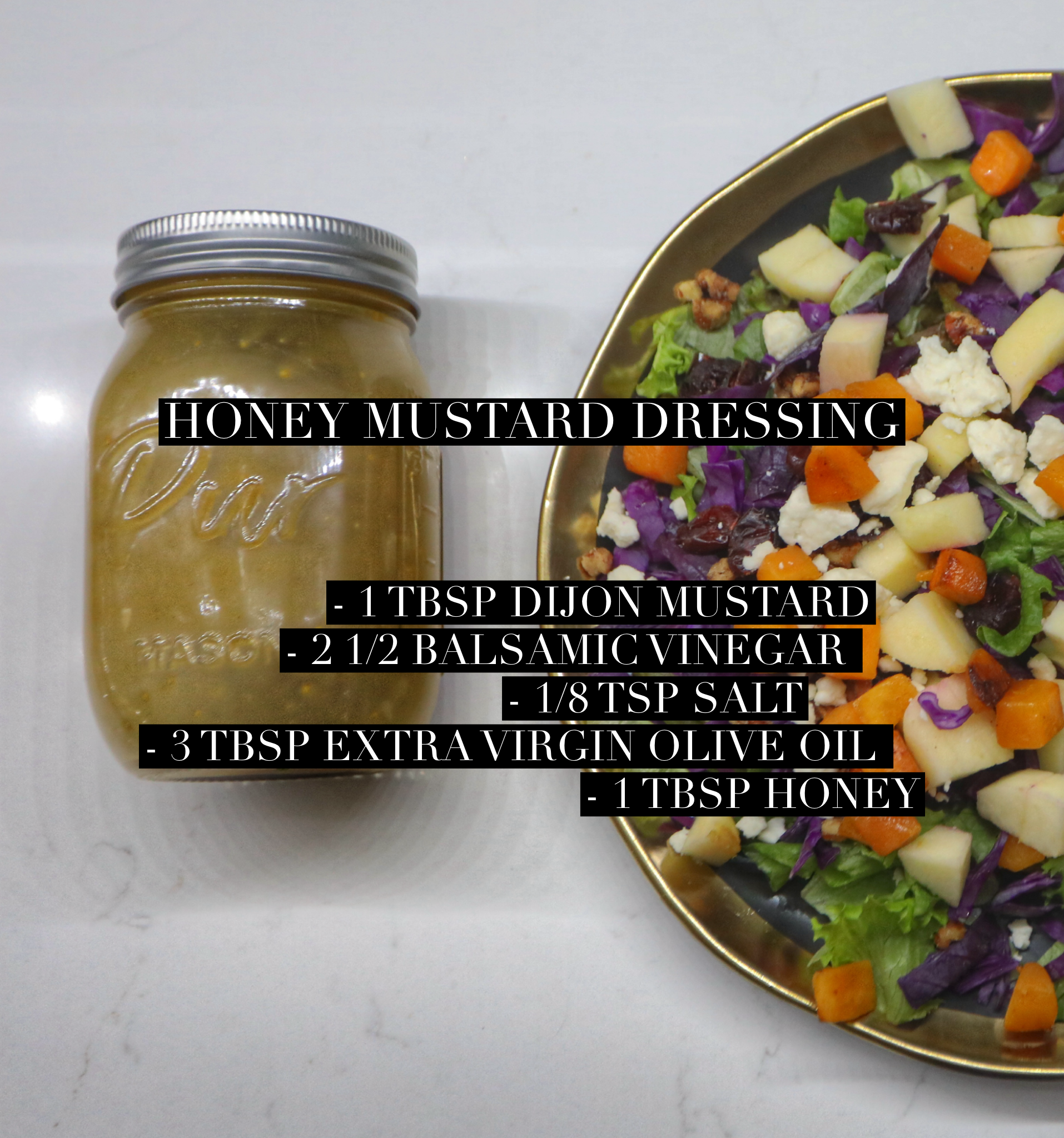 Let’s make our dressing. One thing I added to this was honey because I’m obsessed with more of a honey mustard vibe. Feel free to exclude. Make sure you emulsify very well to make sure the oil mixes well.