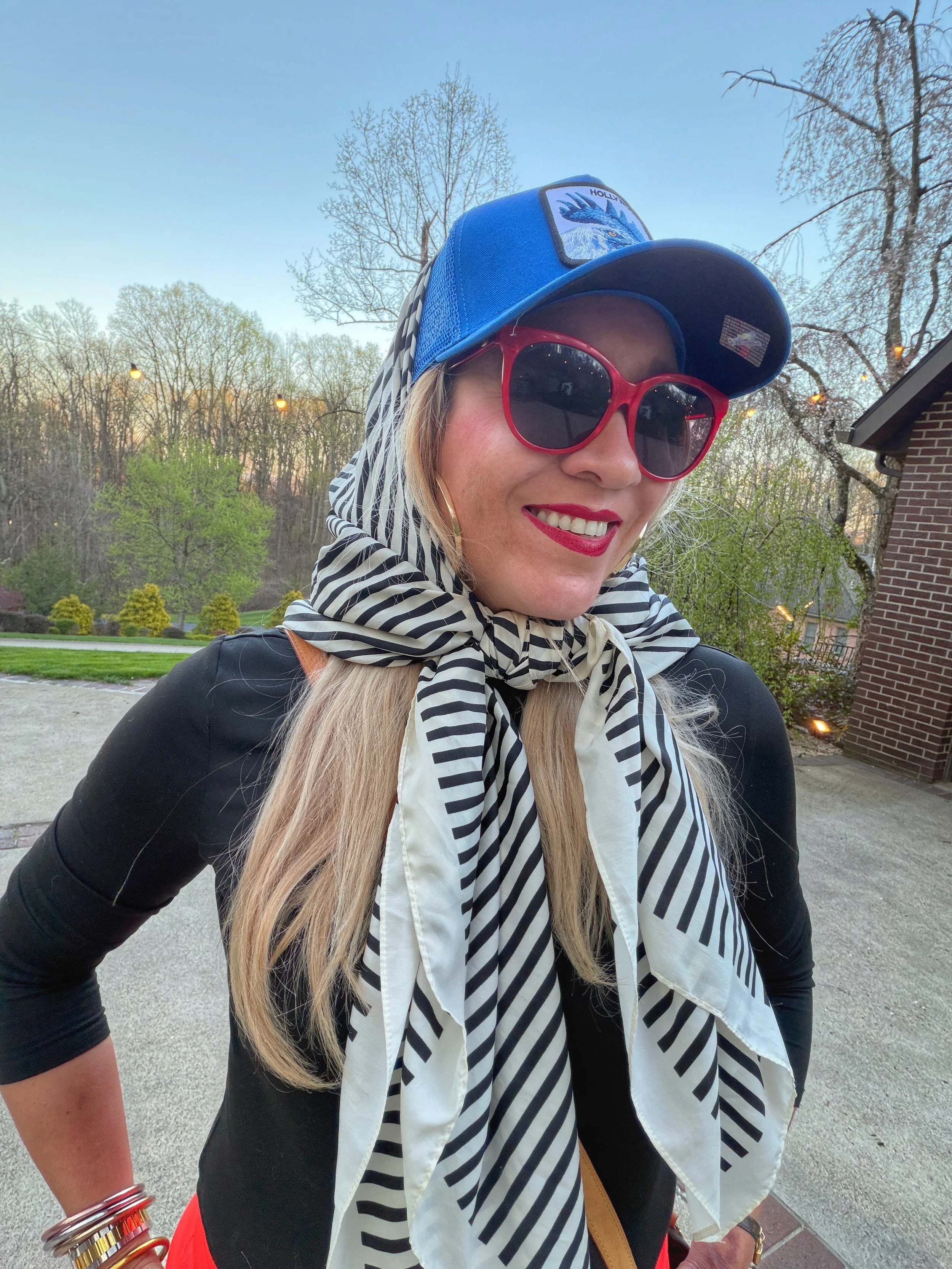 Not feeling the hat? Grab a scarf and up your chic mojo for the day. Don’t forget your sunnies. Looking back I should have opted for Jackie O. oversized glasses. But these red Gucci ones are a major staple for me.