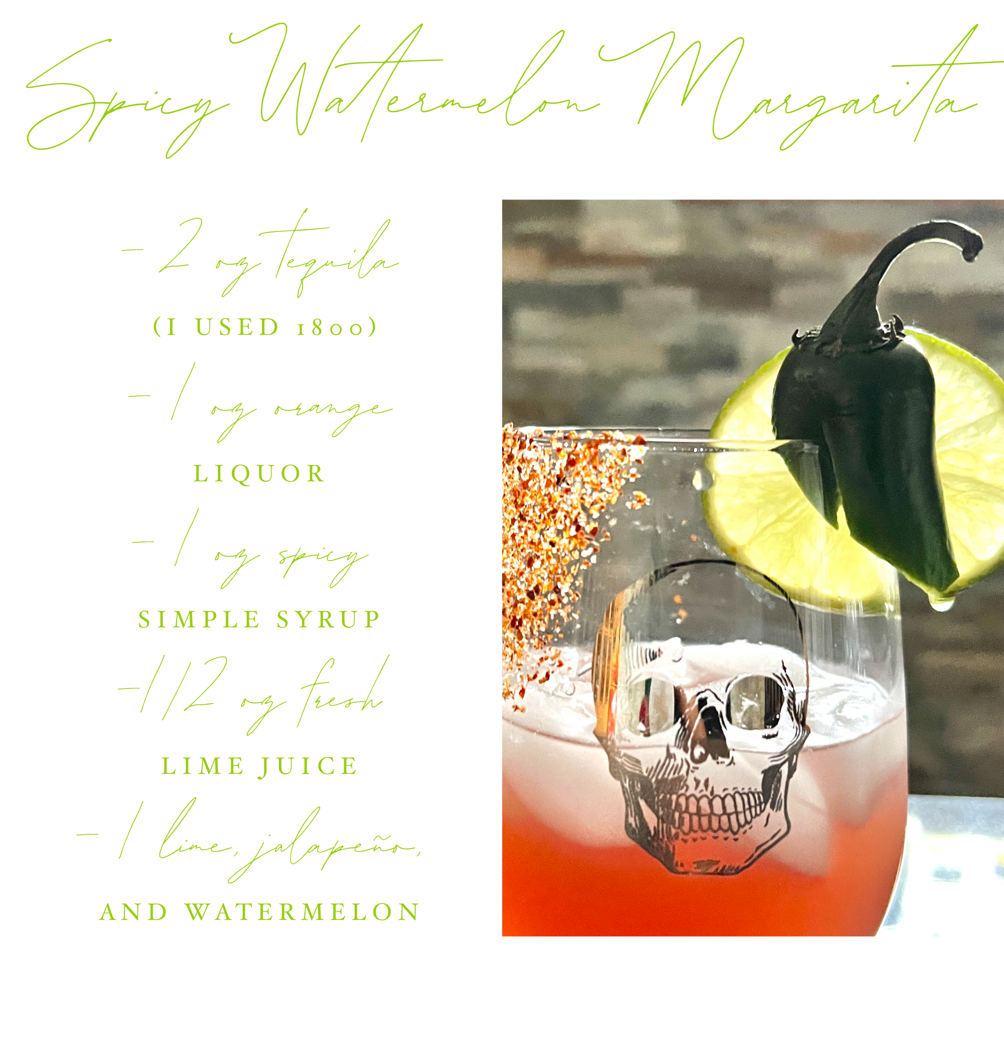 Making cocktails is so much more to me than throwing together a drink. I love to play with flavors and see what works and maybe what doesn’t. I had a whole different drink planned for this week but I simply had to share this one. Catching myself craving a spicy watermelon margarita, I knew it just had to be the drink this week.