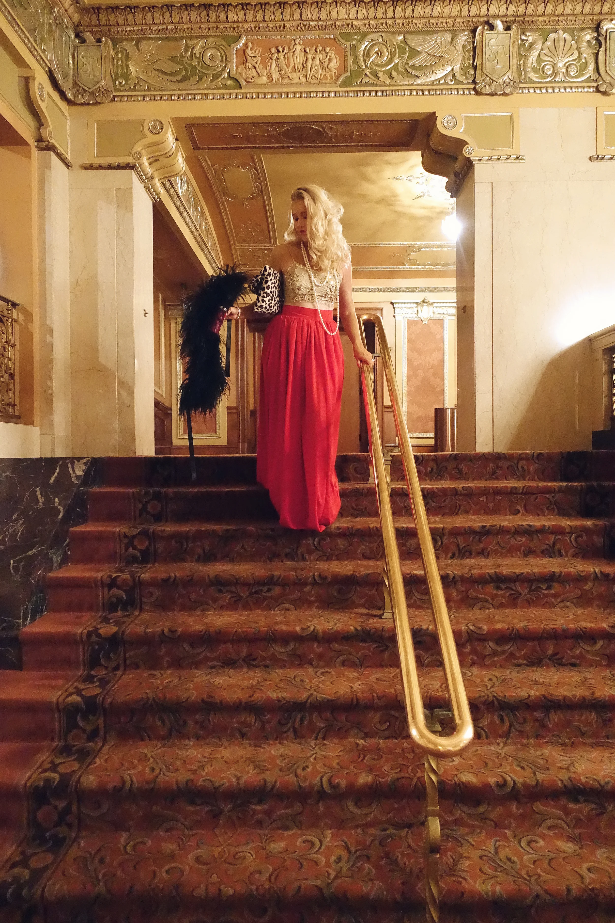 My outfit was one for the books. First, my skirt. My mom (a seamstress by trade) made my skirt. I saw many photos of full length skirts and kind of told her what I wanted. Thanks Mom!!The top is from Forever 21 and fabulous feather stole is from Chantal Thomass from our trip to Paris. I actually saw it, fell in love with it, left it, and then went back for you.