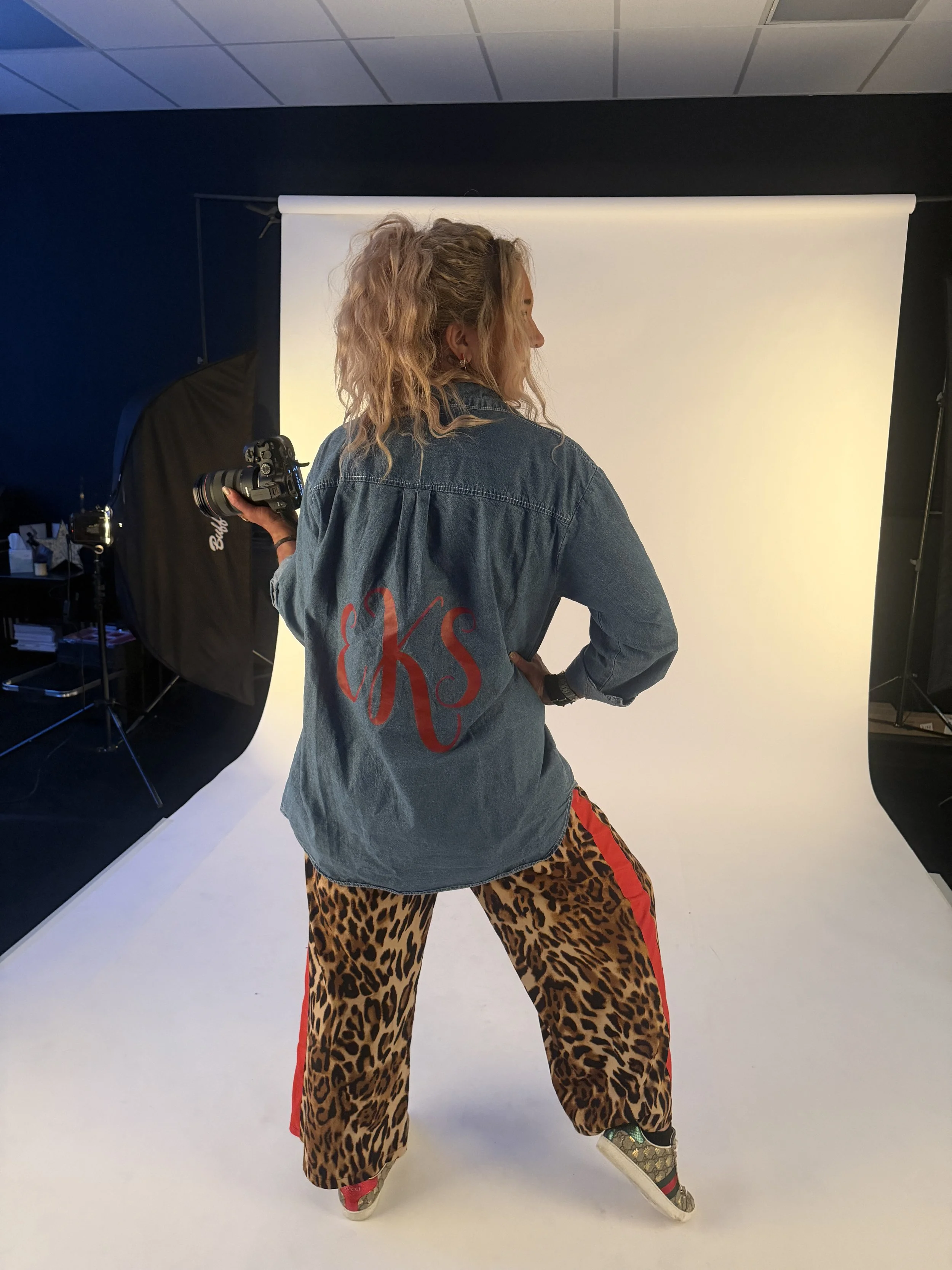 Today was busy because I had another shoot before headed to this one. I absolutely love a good ol’ fashion band tee. It’s one of the most versatile things you can have in your closet. Also, I love these pants they also go with everything. To finish the look I threw on my EKS denim monogram and bee Gucci sneakers with once again gold jewelry.